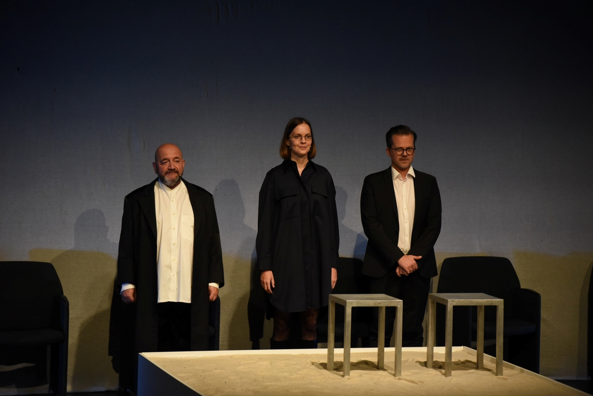 Na odru so se predstavili odlični ustvarjalci: Barbara Ribnikar in Gregor Čušin, ki sta z žensko in moško interpretacijo Kafkove besede stkala napeto dialoškost pisma, ter pianist Sašo Vollmaier, ki je z izrazno močjo glasbe dodal novo dimenzijo dramskemu toku. Glasba je delovala kot notranji glas, ki ni le spremljal besedila, temveč ga je dopolnjeval in poglabljal.