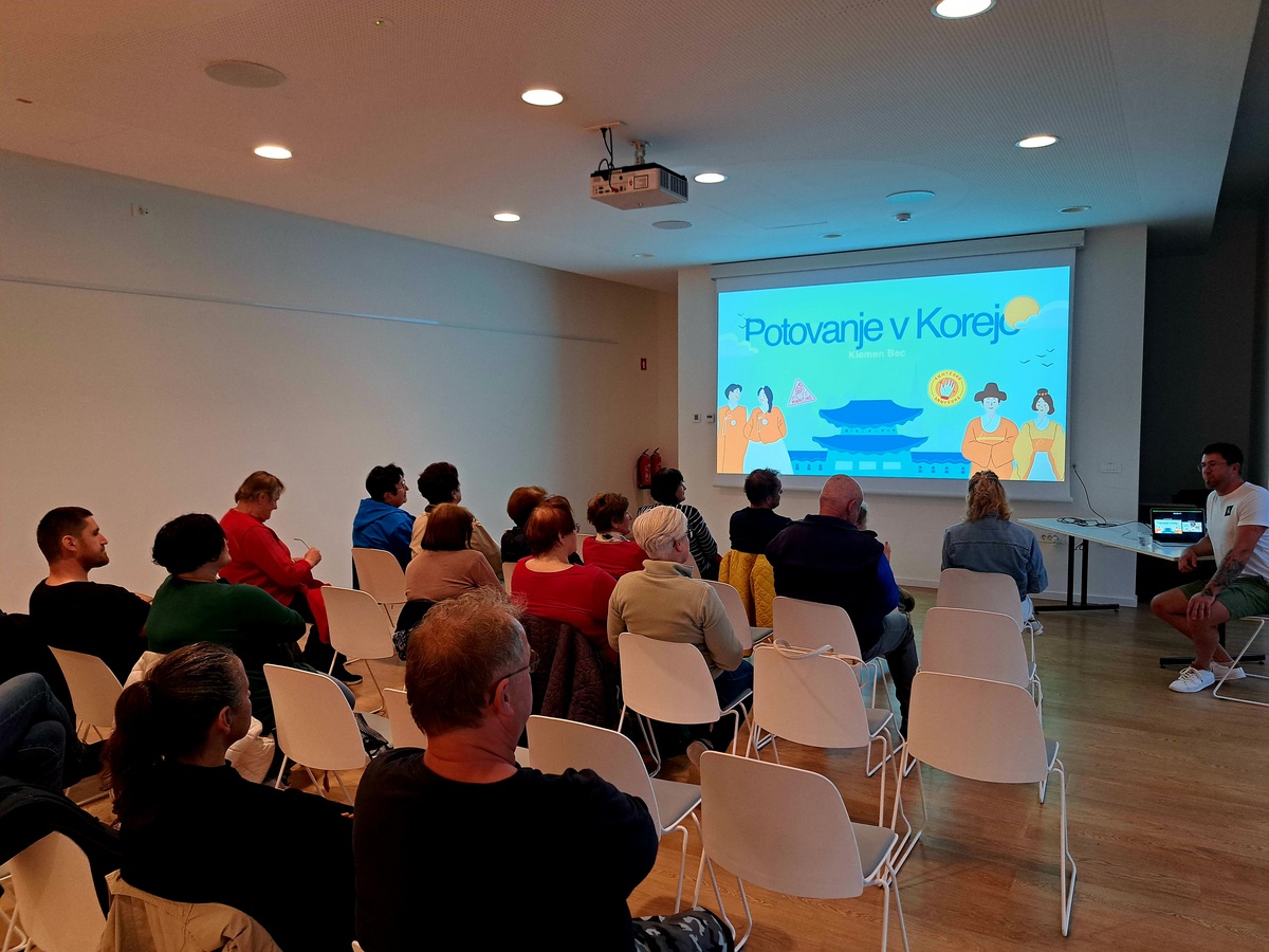 V četrtek, 15. maja 2025, smo imeli priložnost prisluhniti navdihujočemu in slikovitemu potopisnemu predavanju Klemna Beca, ki nas je popeljal v osrčje Južne Koreje – države, ki ga je, kot je sam povedal, presenetila v vseh pogledih. Njegovo pripovedovanje je bilo polno osebnih vtisov, anekdot in živahnih opisov, ki so slušateljem približali tako sodobno življenje v korejskih velemestih kot tudi bogato kulturno dediščino te fascinantne azijske države.